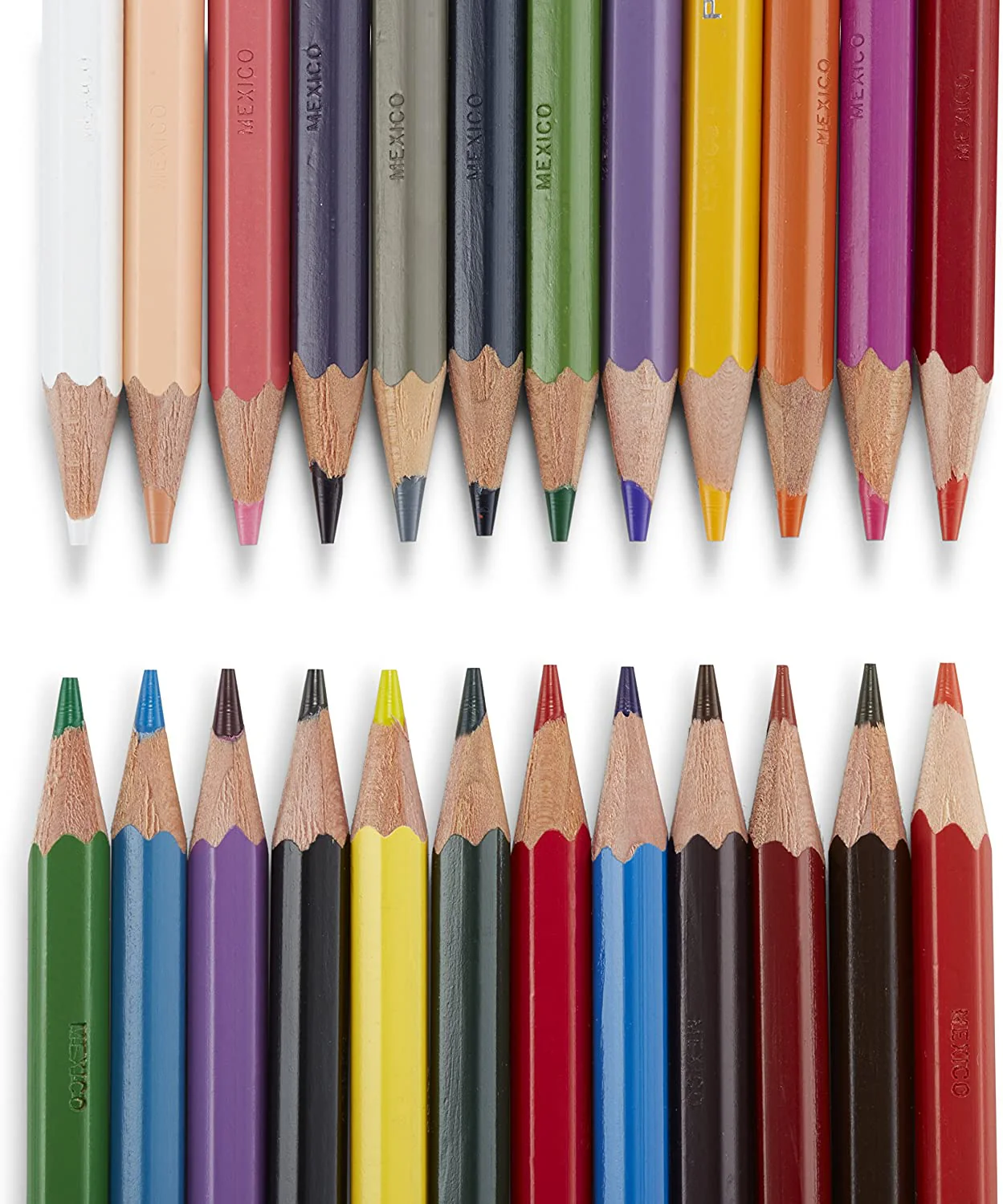 Includes: Vermillion, Brown, Terra Cotta, Tuscan Red, Blue, Carmine Red, Green, Yellow, Black, Purple, Light Blue, Light Green, White, Light Peach, Pink, Violet, Light Grey, Indigo Blue, Grass Green, Lavender, Canary Yellow, Orange, Rose and Red erasable pencils