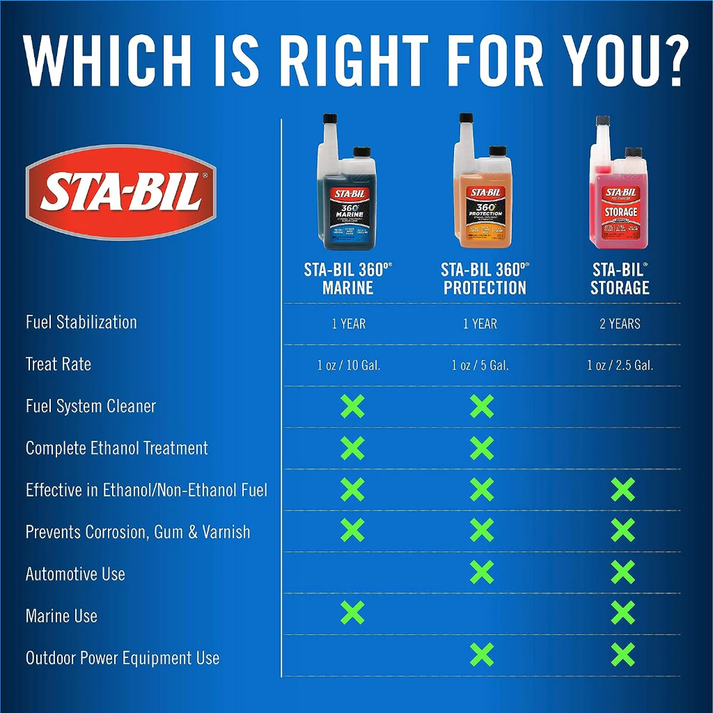 ● Fuel Stabilizer - Use STA-BIL 360 Marine to prevent fuel corrosion and keep ethanol-blended fuels fresh for up to 12 months, so your fuel system and engine stay healthy and ready for action!